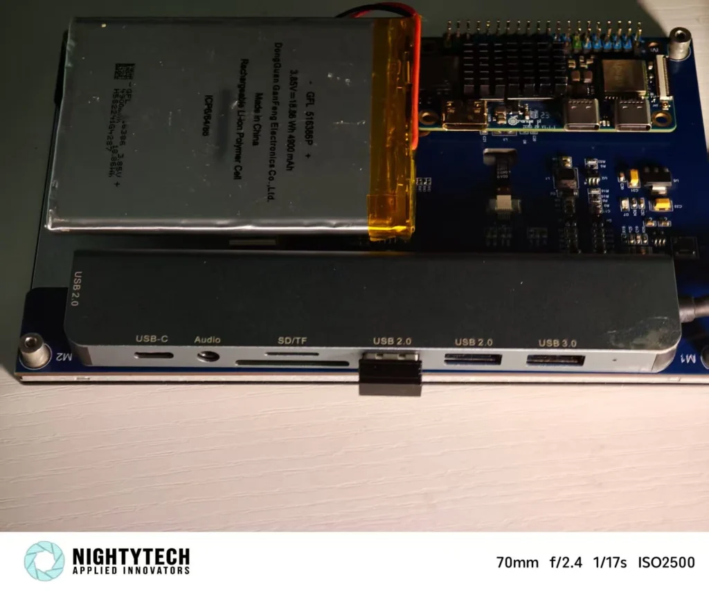 - 通过OrangePi zero3的20pin引脚引出USB2.0接口并焊接母口,安装外壳和散热,设计电源管理模块并接上电池、外壳和电量显示模块,设计并安装磁吸连接供电方式,制作出完整设备
